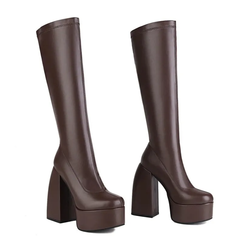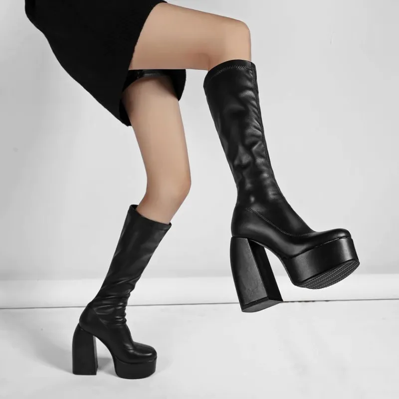Le talon carré unique ajoute une touche d’originalité, et la hauteur de la plateforme vous donne un peu plus de hauteur. Que vous sortiez en ville ou que vous fassiez vos courses, ces bottes feront tourner les têtes à coup sûr. Alors n’attendez plus, commandez votre paire dès aujourd’hui !