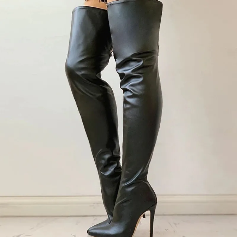 Si vous cherchez à combiner l’insolence et le style, nous avons ce qu’il vous faut : des cuissardes sexy pour femmes. Avec leur bout pointu et leur talon très haut (8 cm), ces bottes à hauteur de cuisse feront certainement tourner les têtes. Et n’oubliez pas la fermeture éclair spectaculaire sur le côté – elle ajoutera juste ce qu’il faut pour que les gens sachent que vous êtes sérieuse ! Chaque femme veut être fabuleuse, et ces chaussures ne vous décevront pas.