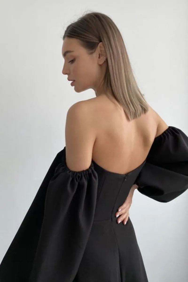 La silhouette est flatteuse pour toutes les morphologies, et le dos nu est à la fois sexy et élégant. La longueur mi-mollet est parfaite pour mettre en valeur vos jambes, et la manche bouffante ajoute une touche de féminité.