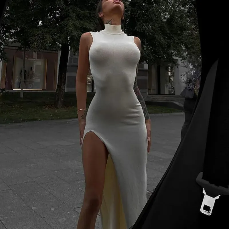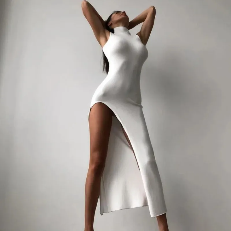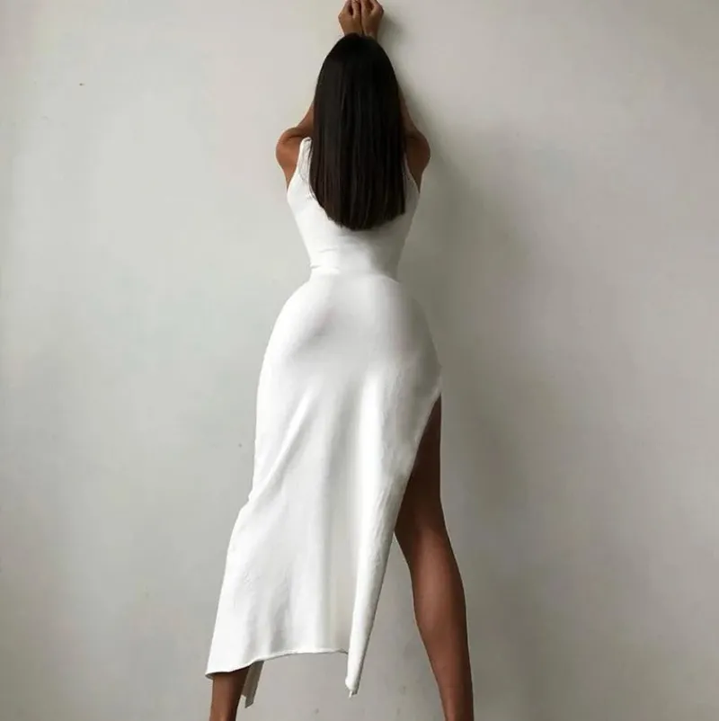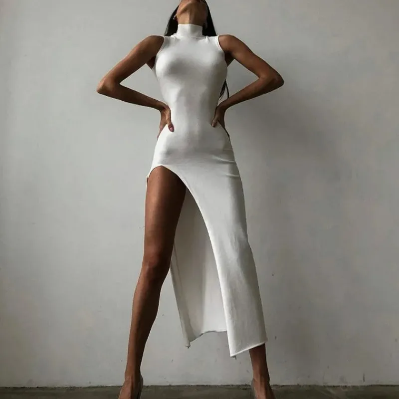 Vous recherchez une et élégante qui fera tourner les têtes ? Ne cherchez pas plus loin que la robe ouverte et sexy. Cette robe moulante est fabriquée dans un tissu en maille lisse et extensible qui mettra vos courbes en valeur de toutes les façons possibles. La coupe asymétrique et la fente latérale haute ajoutent une touche de sensualité, tandis que la couleur blanche synonyme de pureté vous donnera l’impression légère mais hot.