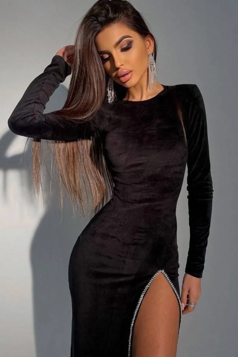 Voici la robe sexy en velours ! Cette superbe pièce est parfaite pour toute sortie ou événement spécial. Le luxueux tissu en velours est lisse et doux au toucher, tandis que la silhouette moulante est sûre de flatter vos courbes. L’encolure ronde et l’ourlet asymétrique ajoutent une touche de détails, tandis que la fermeture éclair apparente à l’arrière ajoute un peu d’originalité.